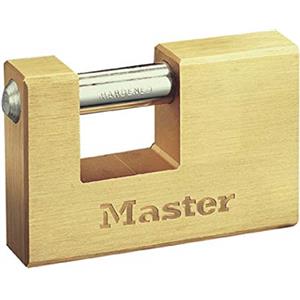 Master Lock Lucchetto Rettangolare in Ottone Massiccio a Chiave - Oro, 7,5 x 7,6 x 1,5 cm, per Uso Interno ed Esterno