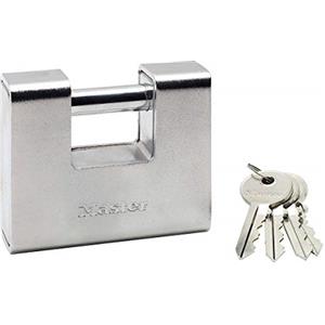 Master Lock Lucchetto Rettangolare in Zinco a Chiave - Durevole, 10,4 x 9 x 2,9 cm, per Uso Interno ed Esterno