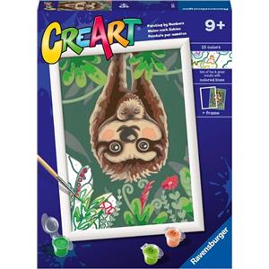 Ravensburger CreArt Serie D - Kit per Dipingere con i Numeri Bradipo Pigro, Completo di Tavola Prestampata, Pennello e Colori, Gioco Educativo per Bambini 7 Anni
