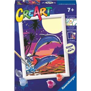 Ravensburger CreArt Serie E: Kit per Dipingere con i Numeri - Delfini al Chiaro di Luna, Include Tavola Prestampata, Pennello e Colori, Ideale per Bambini 7 Anni