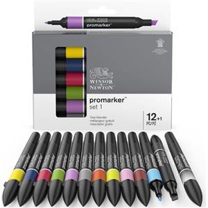 Winsor&Newton Set 12 Pennarelli Promarker con Doppia Punta e Blender - Colori Assortiti