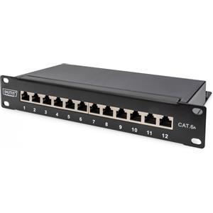 Digitus Pannello Patch Cat.6A, 12 Porte RJ45, Schermato, Rack Mount 10 Pollici, 1U, Pannello di Distribuzione LSA, Nero