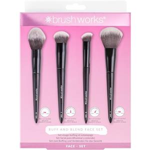 Brushworks Buff and Blend Face Set - Set di pennelli per viso con setole in taklon morbide, 4 pezzi, per trucco perfetto con finitura seamless, cruelty-free e vegan