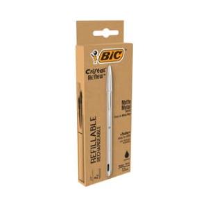 BIC Cristal Re'New - Penna a Sfera Ricaricabile Nera 1mm con Fusto in Metallo e 2 Ricariche Incluse