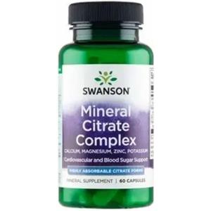 SWANSON Complesso Minerale Citrato - Calcio, Magnesio, Zinco e Potassio in 60 Capsule ad Alta Biodisponibilità