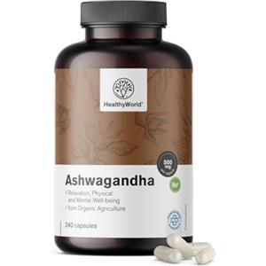 HealthyWorld® Ashwagandha 500 mg - Antistress Premium, 240 Capsule Vegetali Senza Additivi