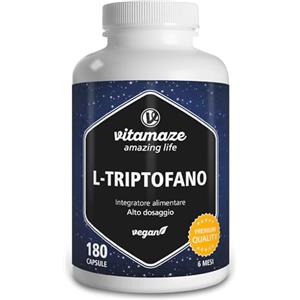 Vitamaze L-Triptofano 500 mg - 180 Capsule Vegan, Amminoacido Essenziale per Sonno e Rigenerazione, Senza Additivi