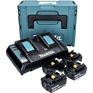 Makita 197720-6 - Kit Power Source 18V con 4 Batterie 3Ah, Caricatore Doppio DC 18 RD e Valigetta Makpac