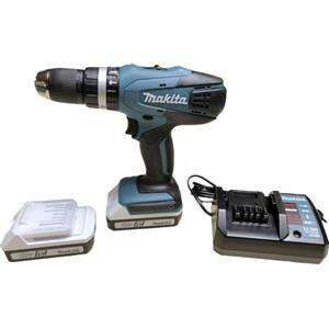 Makita HP457DWE - Trapano avvitatore a percussione, a batteria Li-ion, 1.5 Ah, 18V, Nero, Blu, 1/2 pollice