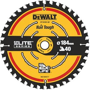 DEWALT Lama Circolare Extreme DT10303-QZ 184x16 mm 40 Denti - Finitura Eccellente, Riduzione Vibrazioni e Taglio Preciso