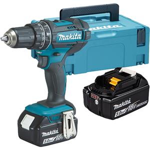 Makita DHP482RTWJ - Trapano avvitatore a percussione + 2 batterie 18 V 5 Ah agli ioni di litio + cofanetto Makpac