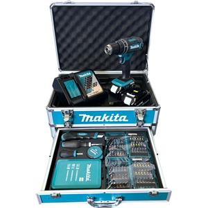 Makita DHP 482 JX13 trapano a percussione a batteria 18 V 62 Nm + 2x batteria ricaricabile 3,0 Ah + caricabatterie + set di utensili da 120 pezzi + Makpac