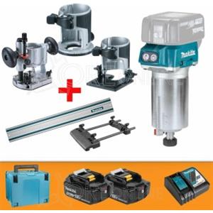 Makita Rifilatore-Fresatrice MAKITA LXT ® DRT50RTJX2 18V + 3 basi - Fornito con due batterie e caricabatterie rapido