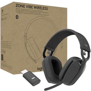 Logitech Zone Vibe Wireless, cuffie Bluetooth con microfono e cancellazione del rumore, USB-A, USB-C per Google Meet, Google Voice, Zoom, Mac/PC