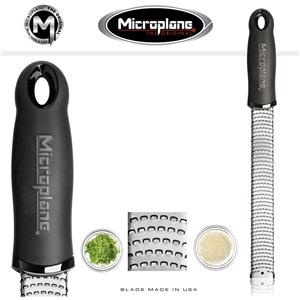 Microplane 46020 Grattugia Zester Premium in Acciaio Inox Nero - Lama Fine per Agrumi e Formaggi, Manico Ergonomico e Cover Inclusa