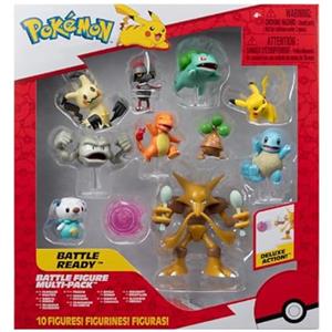 Pokémon PKW - Set di 10 Figure da Battaglia da 2 Pollici con Pikachu, Squirtle, Bulbasaur, Charmander e Alakazam