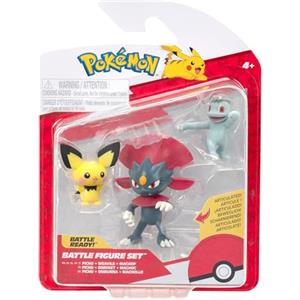 Pokémon Set di Figure: Pichu, Machop, Weavile e Clip 'N' Go Chimchar con Palla Ripetuta