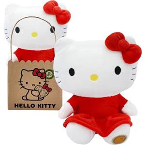 Joy Toy - Peluche Eco-Friendly Hello Kitty con Vestito Rosso - Altezza 24 cm