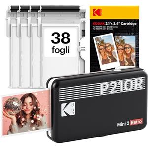 KODAK Mini 2 Retro Stampante Fotografica Portatile 5,3 x 8,6 cm, 38 Fogli, Stampante Smartphone Bluetooth per iPhone & Android, Stampe a Colori Istantanee, Sublimazione 4PASS, Nero