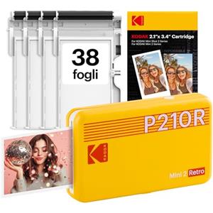 KODAK Mini 2 Retro Stampante Fotografica Portatile 5,3 x 8,6 cm, 38 Fogli, Stampante Smartphone Bluetooth per iPhone & Android, Stampe a Colori Istantanee, Sublimazione 4PASS, Giallo