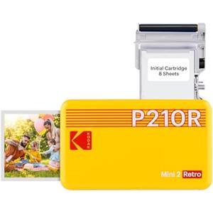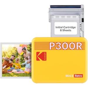 Prinics KODAK Mini 3 Retro 4PASS Portable Photo Printer (3x3") + 8 Sheets, Yellow Stampa