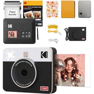 KODAK Mini Shot 3 Retro 4PASS 2-in-1 Fotocamera Istantanea & Stampante Fotografica (7,6x7,6cm) + 38 Fogli Accessori Bundle, Bianco