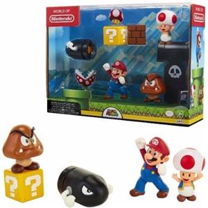 JAKKS Pacific Super Mario Diorama Set Piana delle Ghiande con 4 Personaggi e Accessorio - Età 3 Anni