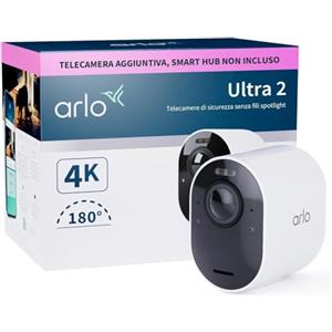 Arlo Ultra 2 Telecamera WiFi Esterno Senza Fili, Telecamera WiFi Interno, 4K UHD, Sirena Allarme Casa, Sensore Di Movimento, Stazione Base Necessaria (Venduta A Parte), 1 Telecamera Aggiuntiva, Bianca