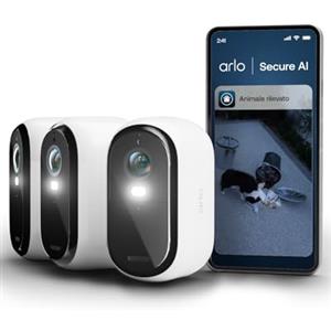 Arlo Essential Telecamera di Sicurezza IP 2K per Esterni e Interni, Wireless, Pacco da 3, Nero/Bianco