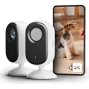 Arlo Essential 2 Telecamera di Sorveglianza 2K Indoor, Wireless, con Sirena Allarme, Sensore di Movimento, Visione Notturna e Copriobiettivo Automatico, Pacco da 2 Telecamere, Bianco