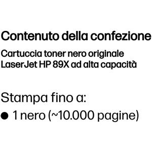 HP Toner Nero Originale CF289X 89X - Alta Capacità, Fino a 10.000 Pagine, Compatibile con LaserJet Enterprise M507 e MFP M528