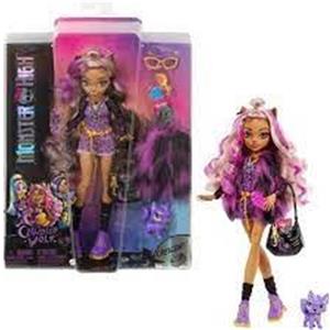 Monster High - Clawdeen, bambola con accessori e gattino, snodata e alla moda con capelli con ciocche viola, Giocattolo per Bambini 4+ Anni, HHK52