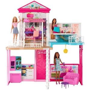 Mattel GLH56 Barbie Casa delle Bambole con 3 Bambole, Piscina e Accessori