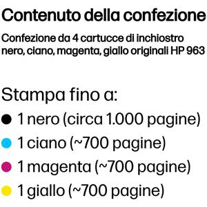 HP Cartucce d'Inchiostro Originali 963 - Confezione da 4 Pz (Nero, Ciano, Magenta, Giallo) - Inchiostro a Base di Pigmento, Capacità 47,86 ml, Fino a 2000 Pagine