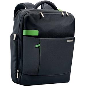 Leitz Zaino Smart Traveller per PC 15,6" - Poliestere Nero, 2 Scomparti, Design Elegante con Manico in Vera Pelle