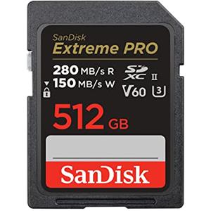 SanDisk 512GB Extreme PRO, scheda SDXC, fino a 280 MB/s, UHS-II Class 10 U3 V60