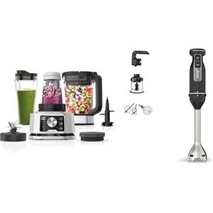 Ninja Foodi Frullatore Power Nutri 3 in 1,1200 W, caraffa da 2,1L, tazza 700ml e ciotola 400ml & Foodi Frullatore a immersione 3 in 1, 850 W, tritatutto ad avvio graduale
