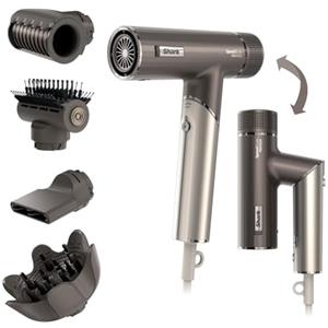 Shark SpeedStyle Pro FLEX Asciugacapelli - Alte Prestazioni, Leggero, Ionico, 4 Accessori, Manico Pieghevole, Argento Mocha