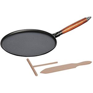 Staub Crepiere in Ghisa Smaltata Nero 28 cm - Adatta a Tutti i Piani Cottura con Paletta Inclusa