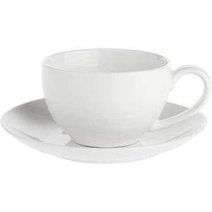 LA Porcellana Bianca Essenziale Tazza Colazione Cappuccino con Piattino 350ml - Design Essenziale e Versatile in Tavola e Cucina