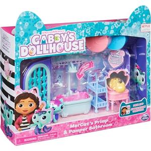 Gabby's Dollhouse Primp and Pamper Bathroom con MerCat, 3 accessori, 3 mobili, 2 scatole con sorpresa e bagno gorgogliante per bambini dai 3 anni in su