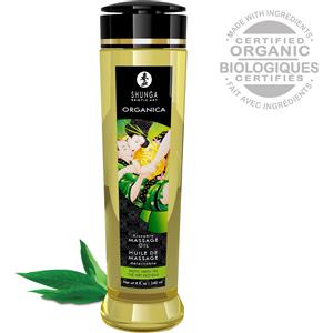Shunga Olio da Massaggio Biologico Tè Verde 240 ml - Stimolante a base d'acqua, Texture Setosa e Senza Parabeni
