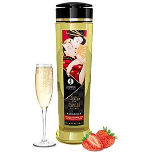 SHUNGA Olio da Massaggio Fragola & Champagne 240 ml - Sensuale e Naturale con Oli Essenziali