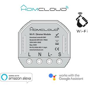 Homcloud Modulo Dimmer Wi-Fi 1CH da Incasso - Controllo Smartphone e Vocale, Compatibile con Alexa e Google Home
