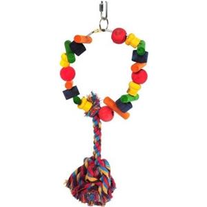 Happy Pet Gioco per Pappagalli Cartwheel - 28cm in Corda e Legno Colorato, Becchettabile e Dondolante