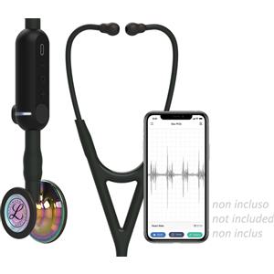3M Littmann Stetoscopio Digitale CORE - Nero con Finitura Arcobaleno, Lunghezza 69 cm, Testina a Due Facce, Batteria Ricaricabile