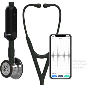 3M Littmann CORE Digital Stetoscopio - Finitura Specchio, Tubo Nero, Lunghezza 69 cm, Amplificazione 40x