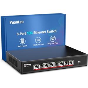 YuanLey Switch Ethernet 10G a 8 Porte RJ45, Velocità Fino a 10Gbps, Auto-Negoziazione, Capacità di Commutazione 160Gbps, Non Gestito e Montabile su Rack