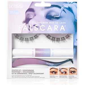 KISS Falscara Starter Kit - Kit Ciglia Finte con 10 Ciuffetti Riutilizzabili, Applicatore e Colla con Biotina e Vitamina E