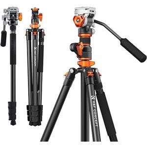 K&F Concept Treppiede Fotocamera 230 cm - Treppiede Video Professionale in Alluminio con Colonna Centrale 90°, Monopiede Staccabile e Testa Idraulica